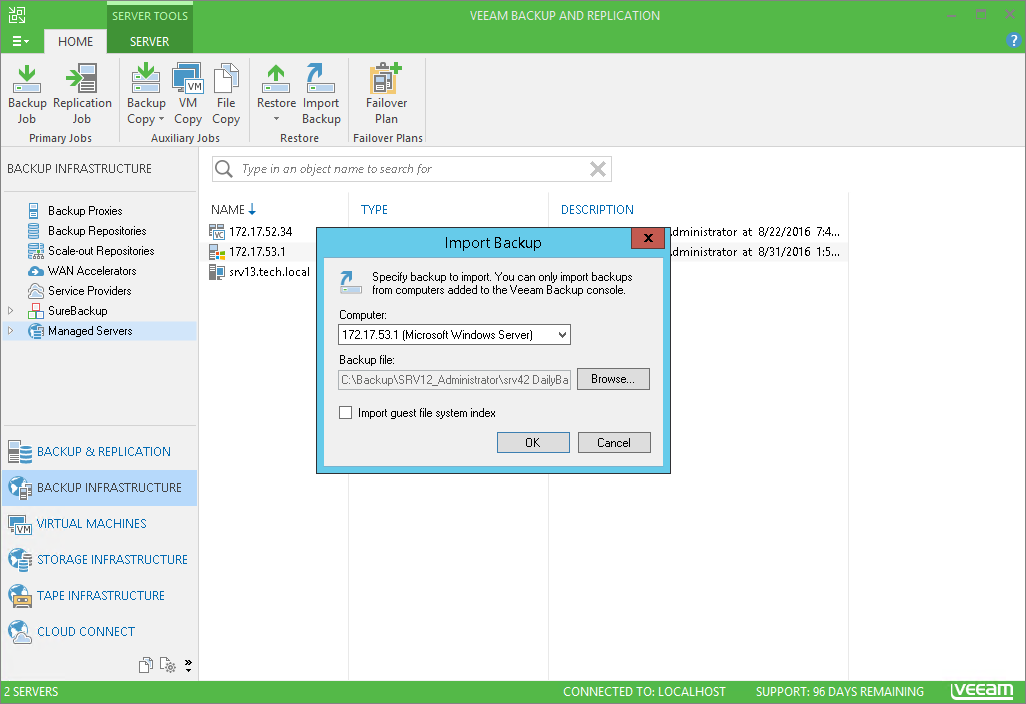 - The computer or server from which you plan to import the backup must be added to Veeam Backup & Replication. Otherwise you will not be able to access backup files.