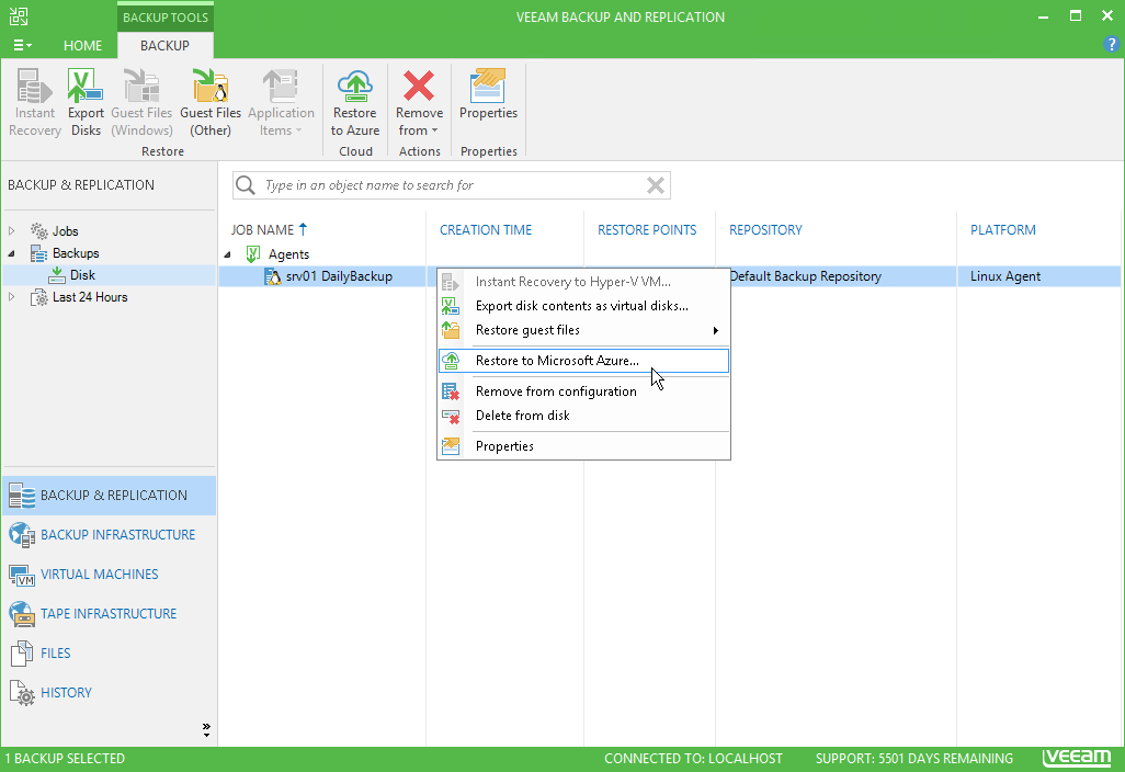 You can restore Linux machines from Veeam Agent backups to Microsoft Azure.