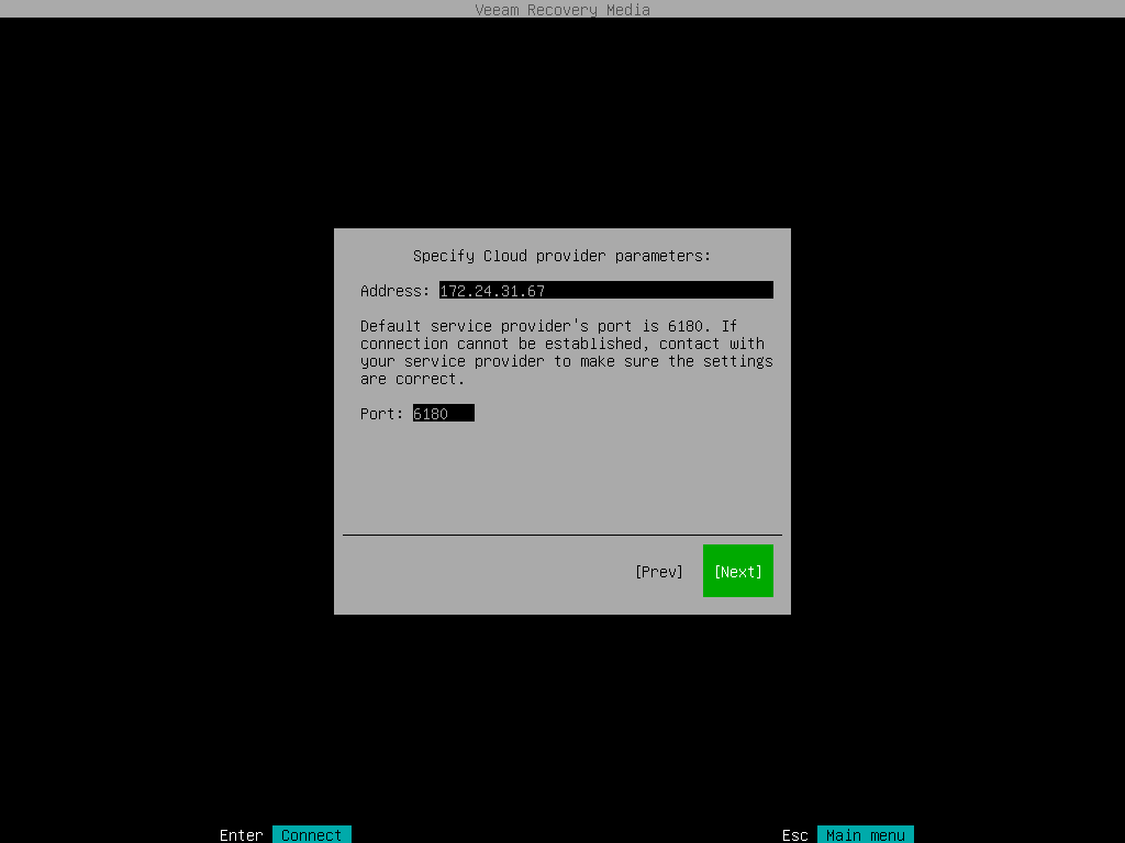 - In the Port field, specify the port over which Veeam Agent will communicate with the cloud gateway. By default, port 6180 is used.