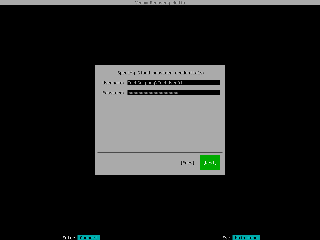 - Press [Enter]. Veeam Agent for Linux will connect to the cloud repository, and you will pass immediately to the Backup step of the wizard.