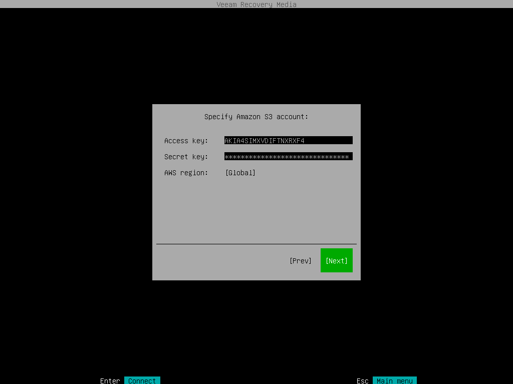 If you have selected to store backup files on an Amazon S3 storage, specify settings to connect to the storage: