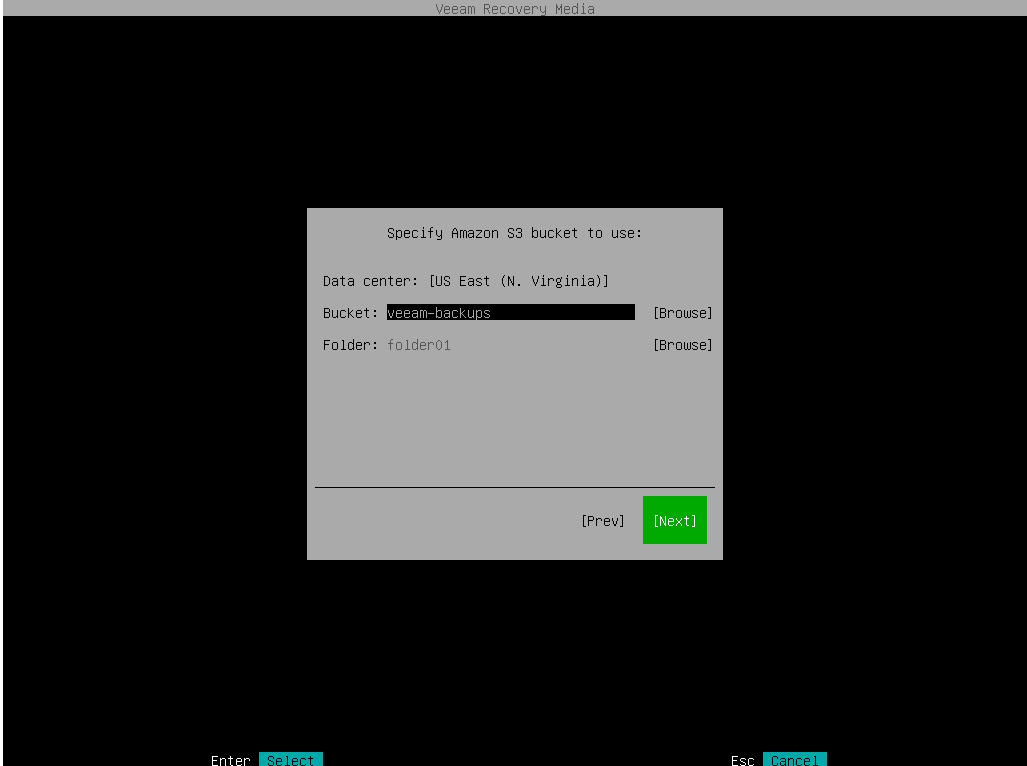 The Bucket step of the wizard is available if you have chosen to import backup from an Amazon S3 storage repository and specified account settings to connect to the storage.
