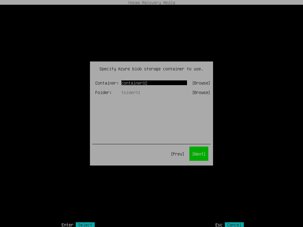 The Container step of the wizard is available if you have chosen to import backup from a Microsoft Azure storage repository and specified account settings to connect to the storage.
