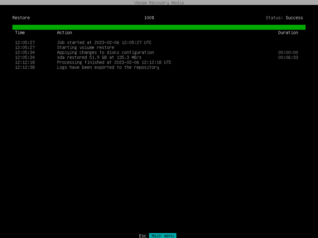 - Press [Enter] to start the volume-level restore process. Veeam Agent for Linux will perform partition re-allocation operations if necessary, restore the necessary data from the backup and overwrite data on your computer with it.