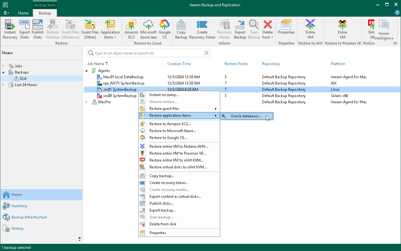You can use Veeam Explorers to restore application items from backups created using Veeam Agent for Linux. Veeam Backup & Replication lets you restore items and objects from the following applications:
