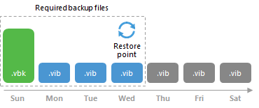 After several backup cycles, you have a chain of backup files in the target location: the first full backup file and subsequent incremental backup files. Every backup file contains a restore point for backed up data. A restore point is a "snapshot" of your data at a specific point in time. You can use restore points to roll back your data to the necessary state.