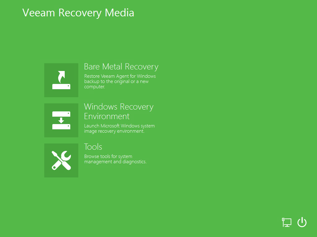 - Bare Metal Recovery — the Veeam Recovery Media wizard to recover data on the original computer or perform bare-metal recovery.