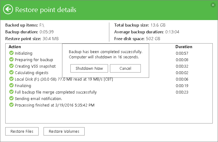 You can set up Veeam Agent for Microsoft Windows to perform a finalizing action after the backup job completes successfully: