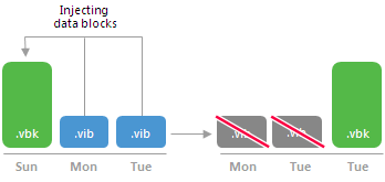 If the backup chain contains several obsolete restore points, the rebuild procedure is similar. Data from several restore points is injected to the re-built full backup file. This way, Veeam Agent for Microsoft Windows makes sure that the backup chain is not broken, and you will be able to recover your data to any restore point.