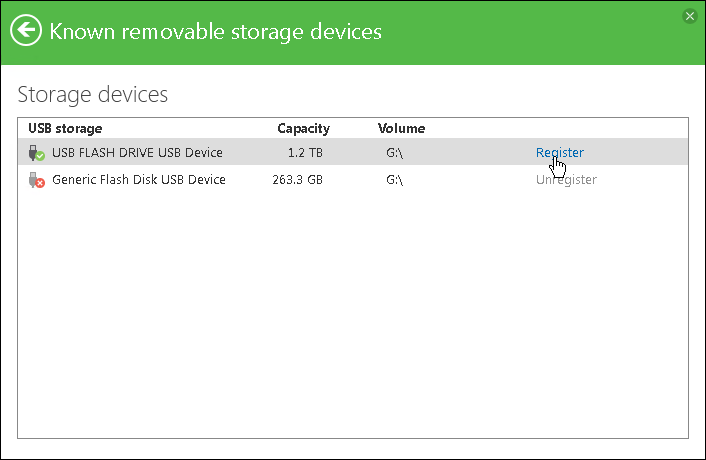 2. Register a newly connected drive as a known removable storage in Veeam Agent for Microsoft Windows. To do this: