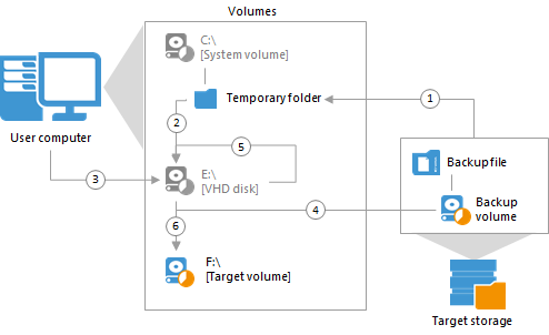 When all data blocks are written to the target volume, Veeam Agent for Microsoft Windows unmounts the VHD disk.