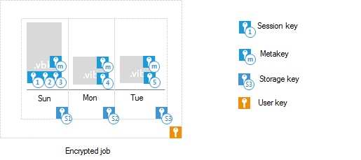 The user key protects data at the job level. In the encryption hierarchy, the user key encrypts storage keys for all restore points in the backup chain.
