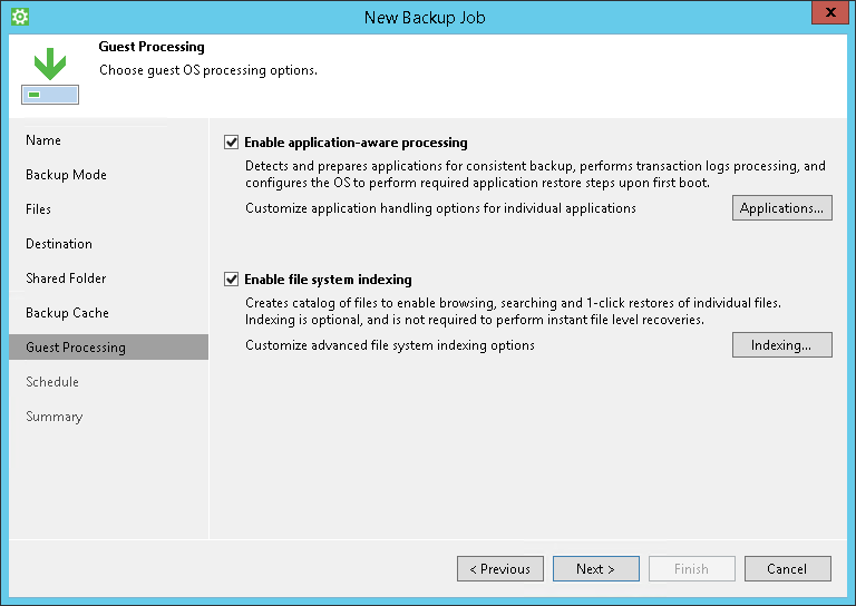The Guest Processing step of the wizard is available in the Server edition of Veeam Agent for Microsoft Windows.