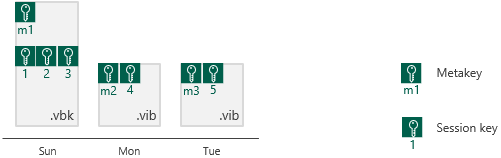 To restore data from such “composed” backup file, Veeam Agent for Microsoft Windows would require a bunch of session keys. For example, if the backup chain contains restore points for 2 months, Veeam Agent for Microsoft Windows would have to keep session keys for a 2-month period.