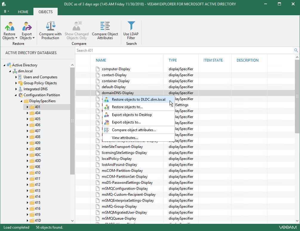 - On the Objects tab, select Restore Objects > Restore objects to <server_name> or right-click an object and select Restore objects to <server_name>.