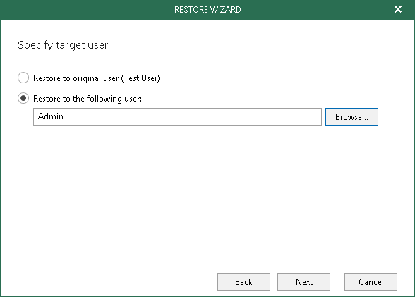 At this step of the wizard, specify the destination user to which you want to copy your data.