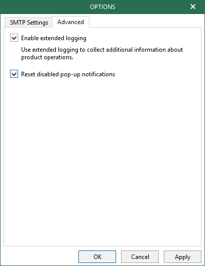 - Select the Reset disabled pop-up notifications check box to enable notifications when loading backups from object storage repositories.