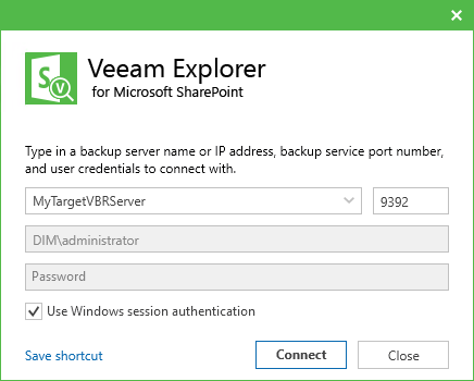 The account must be a member of the Local Administrator group on a target server. To use the account under which Veeam Explorer for Microsoft SharePoint is running, select Use Windows session authentication.
