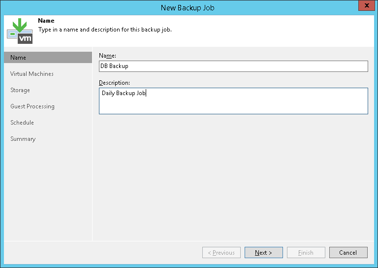 At the Name step of the wizard, specify a name and description for the backup job.
