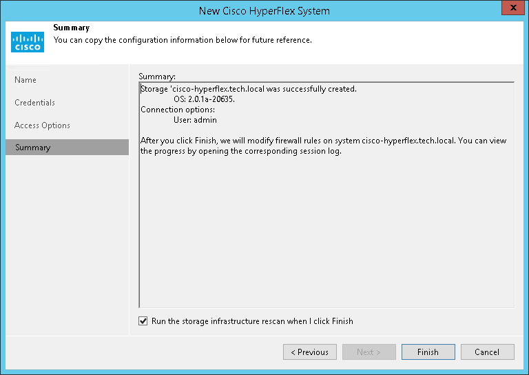 At the Summary step of the wizard, review settings of the added storage system.