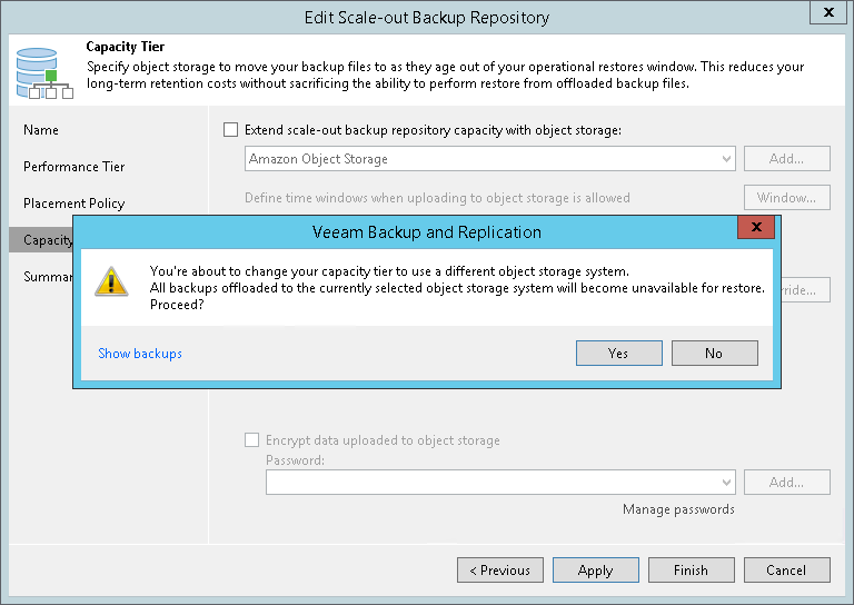- Clear the Extend scale-out backup repository capacity with object storage check box.