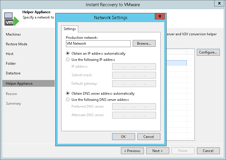 - If you use a DHCP server in the network and want to obtain IP address for the helper appliance automatically, make sure that the Obtain an IP address automatically option is selected.