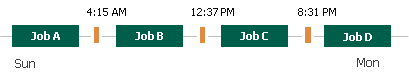 You can schedule jobs to start periodically throughout a day at a specific time interval. The time interval between job sessions can be defined in minutes or hours. For example, you can configure a job to start every 30 minutes or every 2 hours.