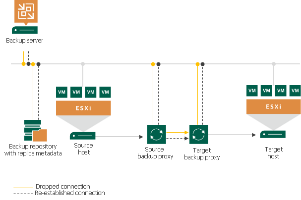 Veeam Backup & Replication automatically re-establishes a connection between the following backup infrastructure components engaged in the data transfer process: