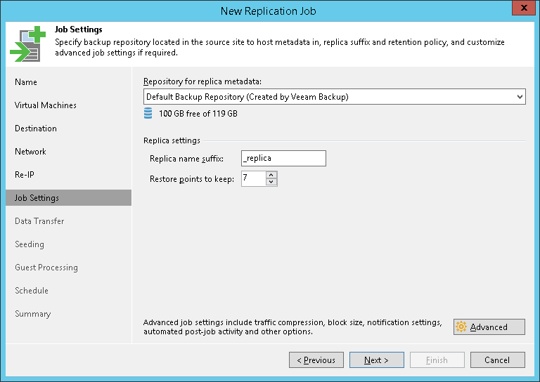- From the Repository for replica metadata list, select a backup repository that is located in the source site. This backup repository will be used to store metadata for VM replicas — checksums of read data blocks required to streamline incremental sessions of the replication job.