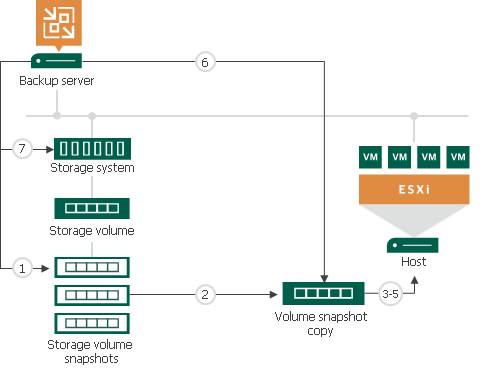 - Veeam Backup & Replication triggers the storage system to create a copy or a clone of this storage snapshot.