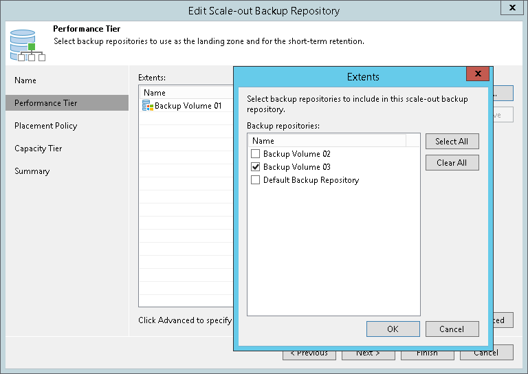 - Pass through the next wizard steps and finish working with the wizard. The new performance extent will be added to the scale-out backup repository.