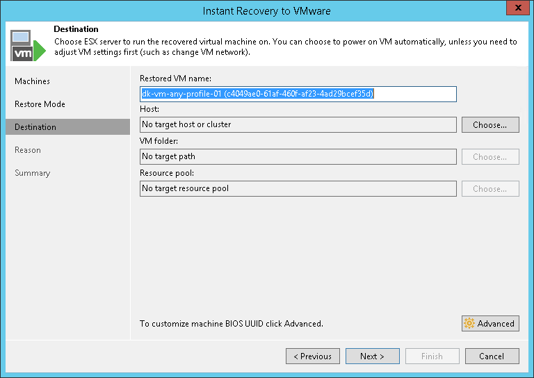 - You can also customize the machine BIOS UUID. To do it, click Advanced and select either Preserve BIOS UUID or Generate new BIOS UUID.