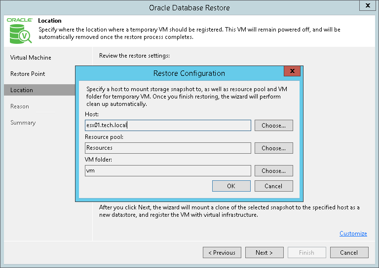 - Next to the Folder field, click Choose and select a folder to which you want to place the temporary VM.