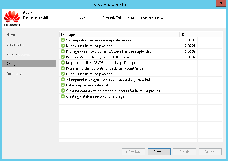 This is an archive version of the document. To get the most up-to-date information, see the current version. Step 5. Apply Settings At the Apply step of the wizard, wait for the storage system to be added to the backup infrastructure. After that, click Next.