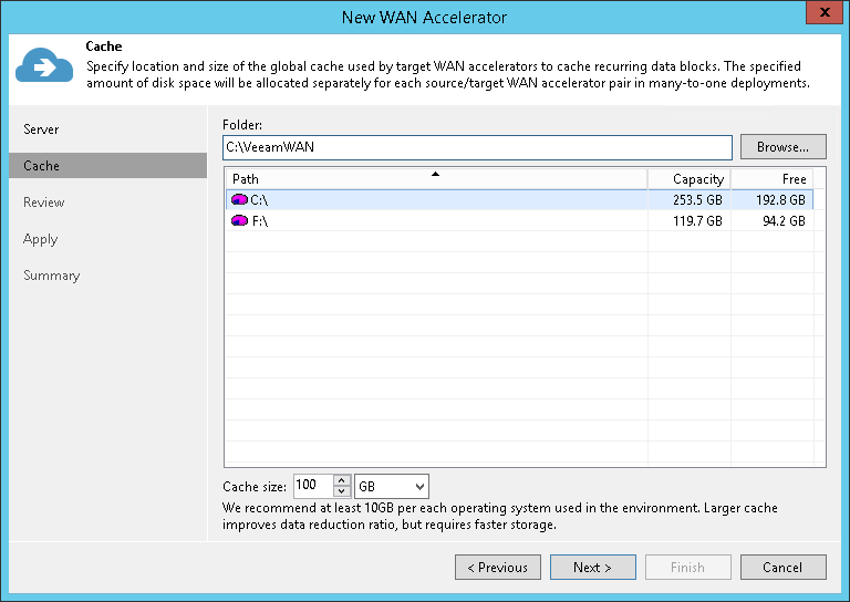 For more information and recommendations on WAN accelerator cache sizing, see the Veeam KB1877 article. |