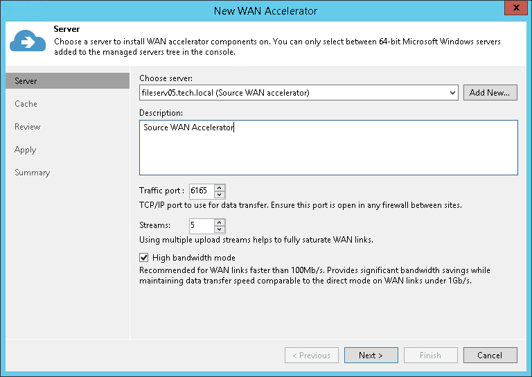 This setting applies only to the source WAN accelerator. The greater is the number of streams, the more bandwidth resources Veeam Backup & Replication will use. A great number of streams engage more CPU and memory resources of the source WAN accelerator.
