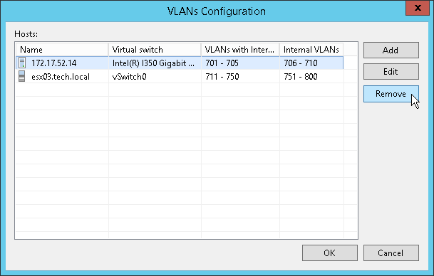 - Remove a VLAN range added in Veeam Backup & Replication.