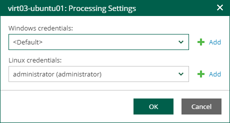 You must specify credentials that will be used to connect to the VM guest OS (Windows or Linux) and to deploy the runtime process.