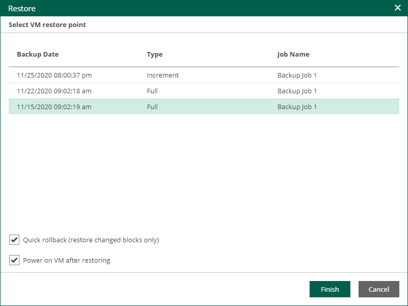 For more information on quick rollback, see the Quick Rollback section of the Veeam Backup & Replication User Guide.