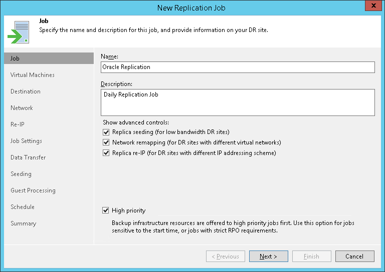 - If you want the resource scheduler of Veeam Backup & Replication to prioritize this job higher than other similar jobs and to allocate resources to it in the first place, select the High priority check box. For more information on job priorities, see Job Priorities.