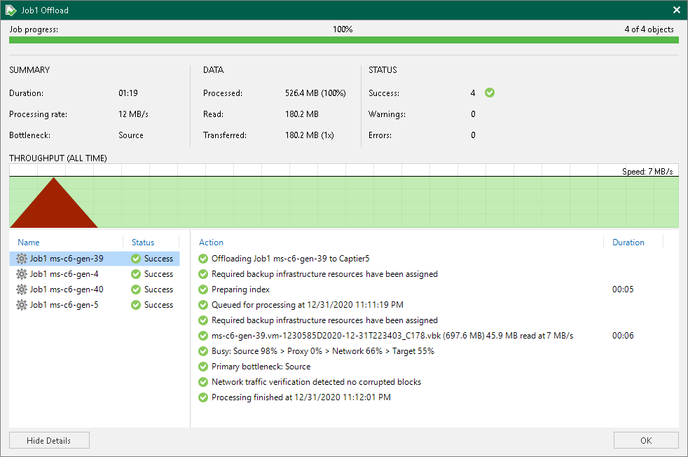 - Processed — total size of all VM disks processed by the offload session.