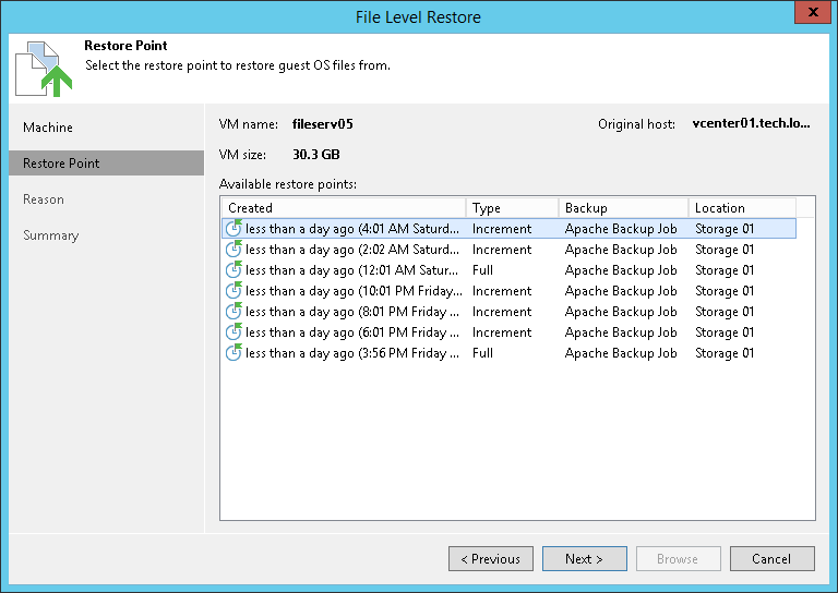 This is an archive version of the document. To get the most up-to-date information, see the current version. Step 3. Select Restore Point At the Restore Point step of the wizard, select a restore point from which you want to restore VM guest OS files.