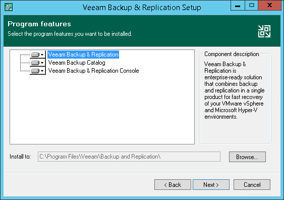 At the Program Features step of the wizard, you can check what components the setup wizard will install on the machine and choose the installation folder.