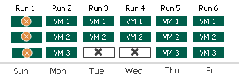 - During the 3rd and 4th job runs, VM 1 and VM 2 were successfully backed up, and VM 3 failed.
