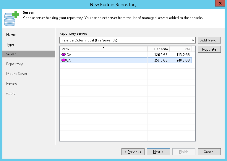- Use the New Backup Repository wizard to add a direct attached storage. For more information, see Adding Backup Repositories. Pay attention to the following settings: