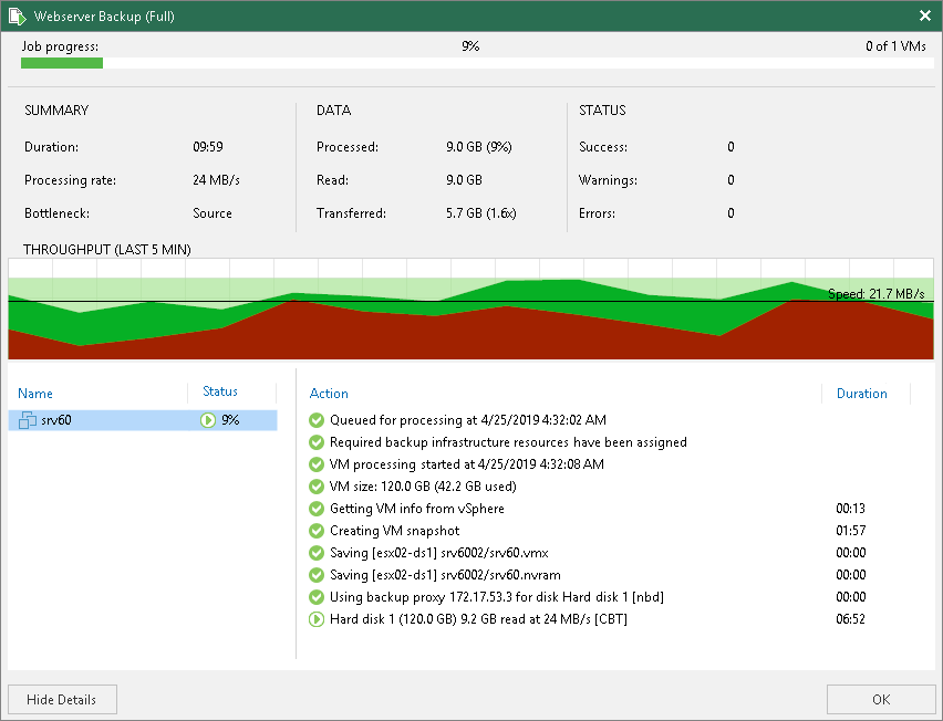 - Open the History view. In the inventory pane select Jobs. In the working area, right-click the necessary job session and select Statistics.