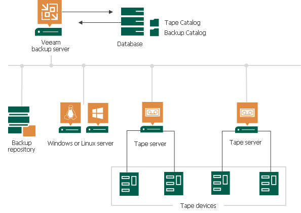 To connect to the tape devices, Veeam Backup & Replication uses tape servers.