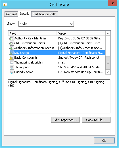 - Veeam Backup & Replication server must trust the CA. That means that the Certification Authority certificate must be added to the Trusted Root Certification Authority store on the Veeam Backup & Replication server.