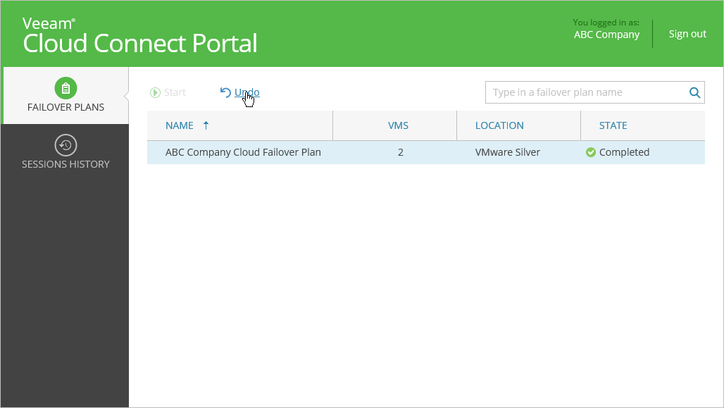 - Log in to Veeam Cloud Connect Portal. The Failover Plans view will automatically open.