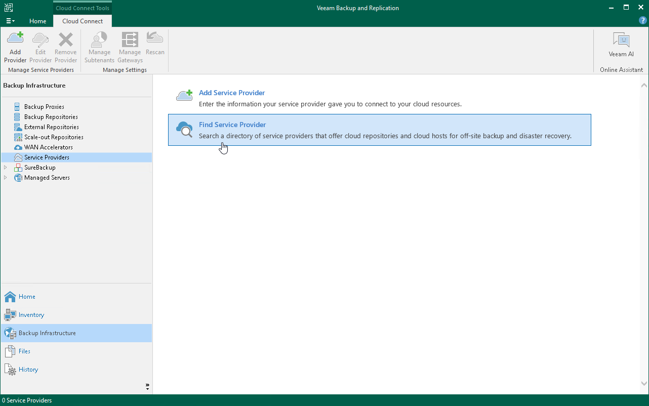 This operation is unavailable if you have already added at least one SP in the Veeam backup console. |